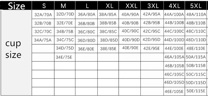 Bralette Size Chart (US)